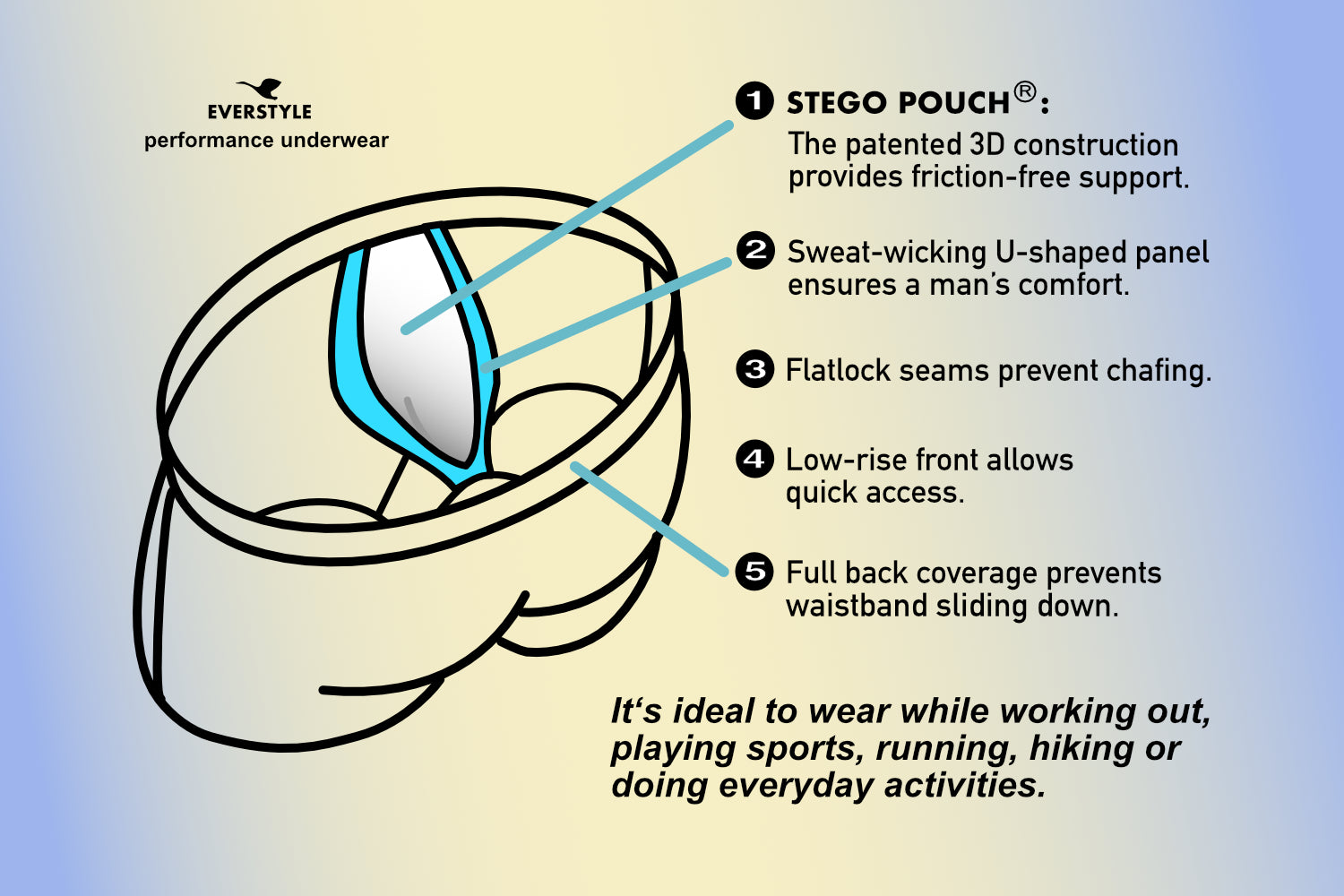 Performance underwear works for sports and everyday activities. A must for a run or hike.